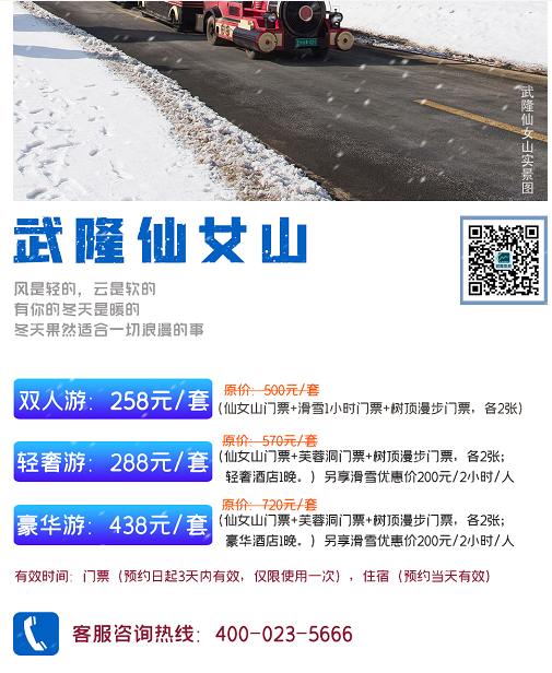 漫天飛雪馬上到,武隆仙女山“惠玩”季提前開啟。即日起至2022年2月27日,武隆景區將推出多種自駕優惠套票: