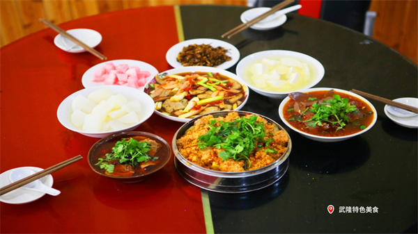 玩累了?武隆美食立刻治愈你!麻辣鮮香的碗碗羊肉、鮮嫩肥美的江口魚、Q彈爽口的羊角豆干、軟糯入味的武隆苕粉,還有各種特色農家菜,每一口都是地道的山城風味,減肥什么的,吃飽了再說!?