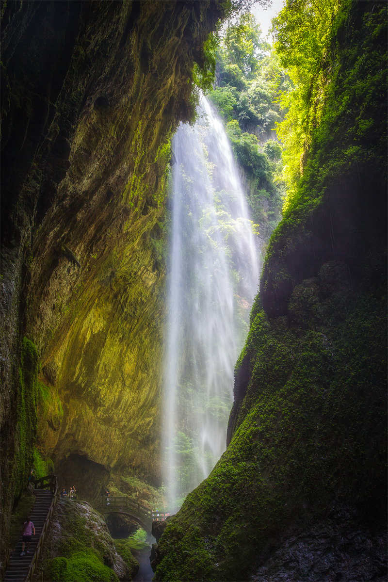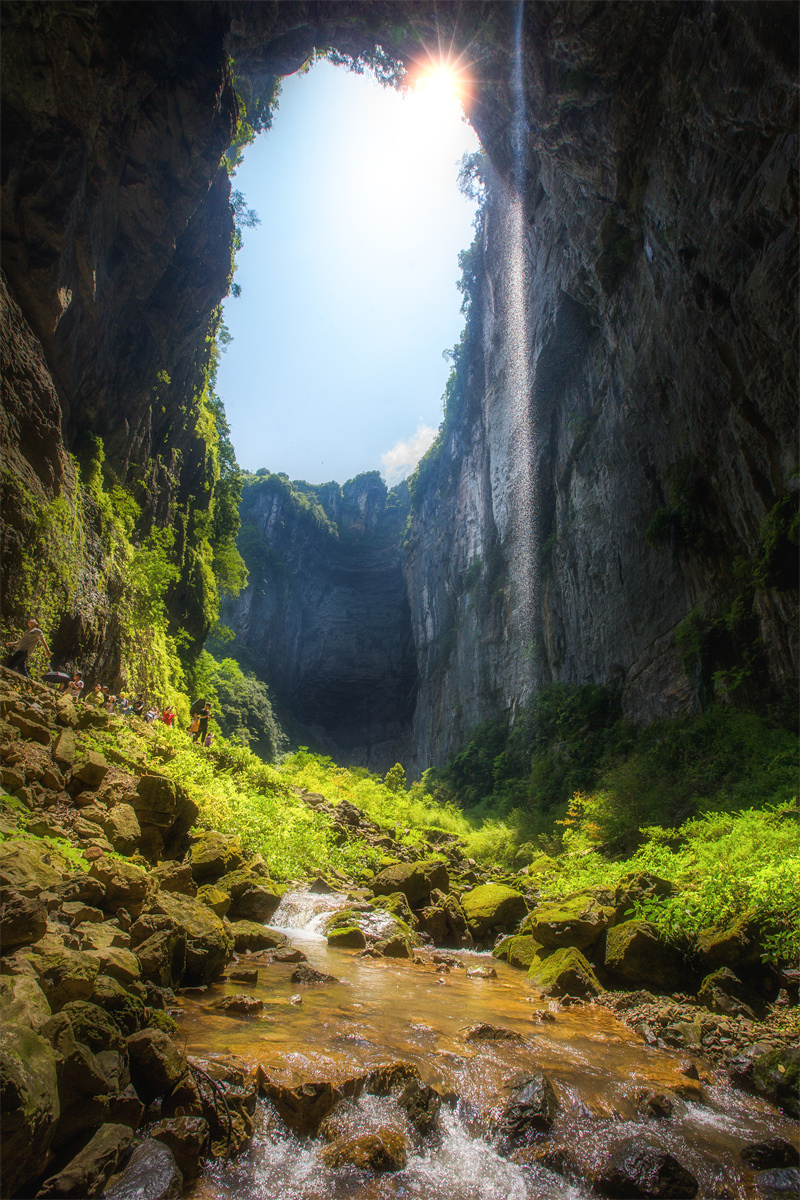 天生三橋是中國南方喀斯特世界自然遺產核心景區,國家5A級景區,國家地質公園,世界自然遺產地,屬典型的喀斯特地貌景觀。春日里的天生三橋,峰林環繞,綠意盎然。橋下流水潺潺,與春日暖陽相互交織。天坑內繁花似錦,芬芳四溢。大自然的鬼斧神工與春日生機完美融合,構成一幅絕美的山水畫卷,令人沉醉其間。
