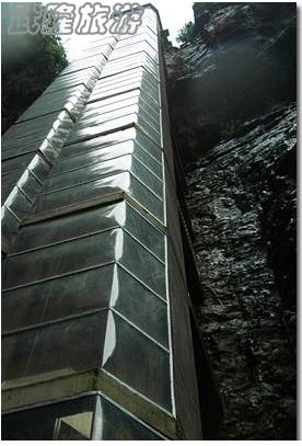 拿著票才能坐這個觀光電梯下到天坑底。也沒別的路。必須坐電梯早上9點。我進景區時。估計還沒一個游客。