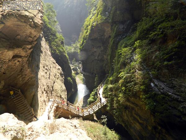 沿著石梯,感受大自然的神奇。從石階與棧道向下望,是深不見底的地縫;一路前行,處處是風(fēng)景。到達(dá)地縫底部,回首,看著不斷走過的游客和那些山水,有著“一步一風(fēng)景,一語一人生”的巨大的感悟。