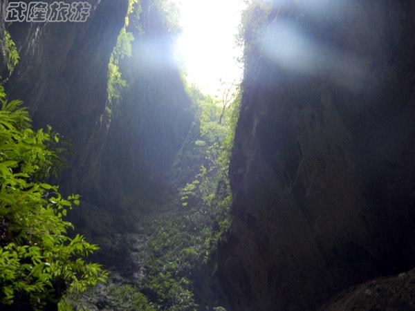 不登高山,不知天之大;不臨深谷,不知地之厚。這是我在進(jìn)入武隆地縫的第一感受。沿著深邃的“時空隧道”,一直往下行去,有一種不斷深入地心的體驗。