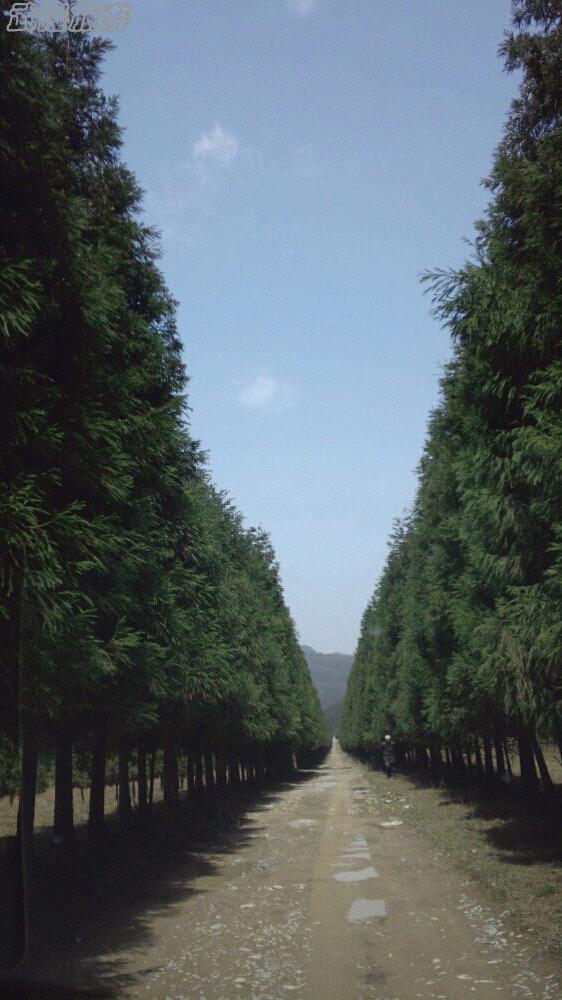 下到谷底了,沒想到路兩邊整齊地栽種了兩排高大的樹木,象夾道歡迎我們一樣,好有迎賓的感覺啊。