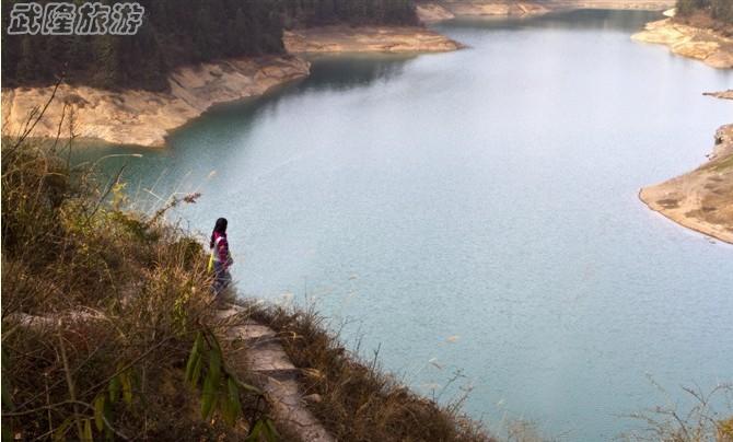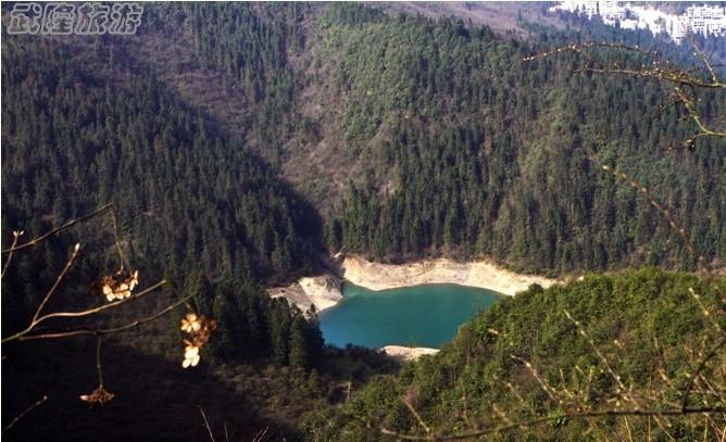 翻過山頂,眼前豁然一亮,一個(gè)綠色的湖泊出現(xiàn)在山底,這就是我們要去的仙女湖了吧,看上去真美啊。