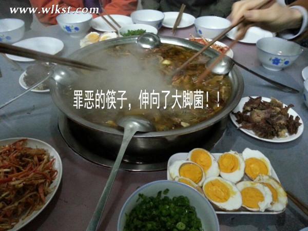 本食欲全無,但一看到這一大鍋的大腳菌燉老母雞,大家立刻興奮起來。沒出息的我們狼吞虎咽地盛湯喝,結果個個都燙得呲牙咧嘴·——因為是純正老母雞,油水很多,所以熱氣散的很慢。