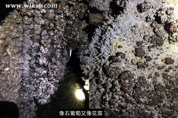 石壁四周是石葡萄鐘乳石。我們駐足拍照觀賞。