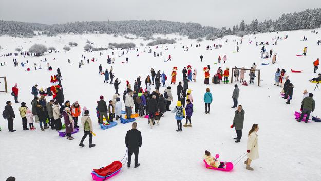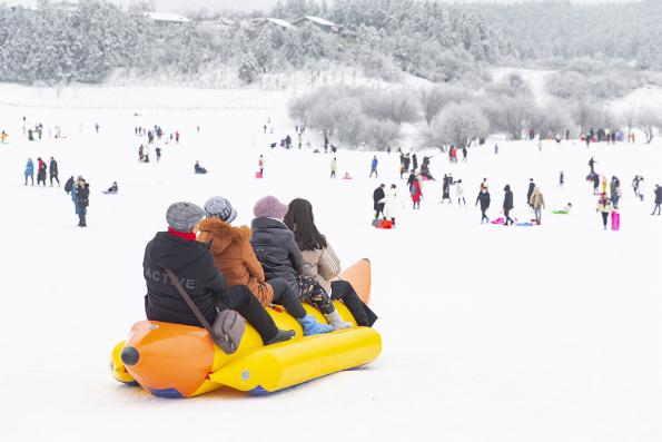 一如平常節假日般人氣爆棚,仙女山精彩刺激的雪上運動、豐富多彩的冰雪主題活動也為新春增添了濃濃的雪趣。在仙女山戶外運動中心,滑雪場內熱鬧非凡,雪上飛碟、滑雪船、滑雪橇……各類滑雪道上人頭攢動,尖叫呼喊聲接連不斷。