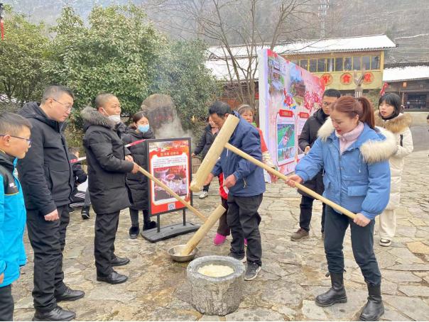 在后坪天池苗寨、大田濕地人家、萬峰吶溪原鄉等鄉村旅游景點年味十足,打糍粑、包湯圓等傳統民俗活動吸引不少游客體驗,重溫兒時的年味,到處充滿著歡慶祥和。