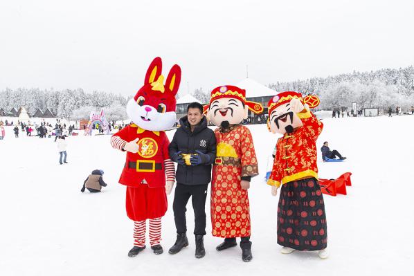 春節期間,武隆仙女山景區舉辦了豐富多彩的雪上體驗活動,冰雪迷宮、童雪樂園、雪上小騎手、雪上陀螺、雪地悠波球、雪地碰碰球、雪上毛毛蟲、雪地點唱機、雪地兔子舞、雪上飛盤、點球大戰、拔河大賽、雪上保齡球、NPC巡游(兔子、獅子等)、雪地尋寶、圍爐煮茶等,眼花繚亂的玩雪新花樣,吸引眾多游客參與體驗。