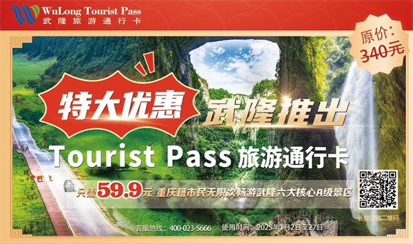@重慶人,來武隆薅羊毛啦!低于1.8折的優惠,你確定不要嗎?原價340元,現僅需59.9元,就能在接下來的一個月內(1月2日至1月27日),實現仙山白馬任我游,天坑地縫隨心賞,芙蓉洞江快樂玩。這價格、這福利、這美景,還有什么理由不心動呢?趕緊打開微信或支付寶搜索“武隆景區官方平臺”小程序,或到武隆景區售票窗口,實名購票吧。
