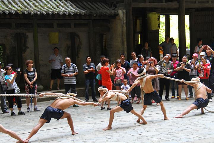 據了解,這是景區為宣傳川江文化,讓更多游客了解“印象·武隆”及巴渝民風民俗,選取“印象·武隆”精彩片段進行的現場表演。即每周一至周五的上下午各派出十余名演員,攜帶演出服裝和道具到天生三橋表演“印象·武隆”演出中《哭嫁》和《川江號子》的精彩片段,讓游客近距離體驗“印象·武隆”的演出內容和特色。當然,由于設備、音效、環境等各方面的影響,“印象·武隆”劇場的完整實景演出才是最震撼人心的。