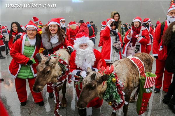 火紅的圣誕服裝,絢麗多彩的圣誕樹,逗逼可愛的卡通人偶……12月24日圣誕節(jié),武隆仙女山沉浸在一片“火紅”的歡樂海洋中,來自全國各大高校的6000名大學(xué)生齊聚武隆,紛紛裝扮成“圣誕老人”模樣扎堆過集體圣誕節(jié),場面甚是壯觀。
