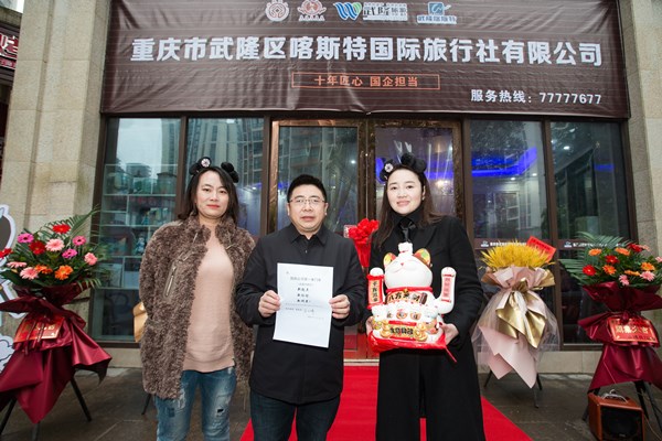 1月21日上午9點16分,重慶市武隆區喀斯特國際旅行社有限公司(以下簡稱喀斯特國旅公司)在武隆區浙浩名邸1-3-1盛大開業,重慶市武隆喀斯特旅游產業(集團)有限公司(以下簡稱喀斯特(集團)公司)黨委副書記、紀委書記陳大業,喀斯特國旅公司執行董事、總經理呂萬峰等領導出席儀式。武隆旅游將迎來新起點,新征程,新碩果!