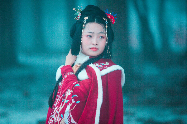 冰雪下的漢服美女美麗凍人