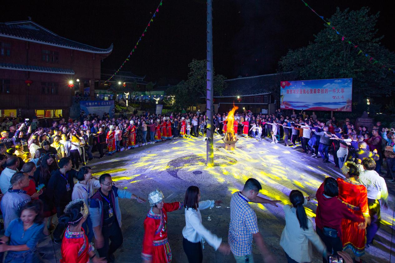 后坪苗寨熱鬧的篝火晚會