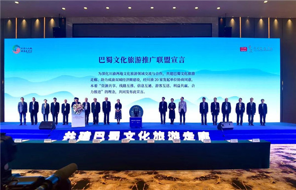 川渝兩地山水相依,人文相親,交通相連,合作基礎(chǔ)牢固。巴蜀文化旅游推廣聯(lián)盟的成立,標(biāo)志著川渝文旅系統(tǒng)推廣領(lǐng)域的資源整合、平臺(tái)整合、渠道整合,此舉將進(jìn)一步實(shí)現(xiàn)優(yōu)勢(shì)互補(bǔ)、線路互推、信息互通、客源互送、資源共享,共同培育巴蜀文化旅游品牌,大力提升川渝兩地文化旅游的知名度和美譽(yù)度。