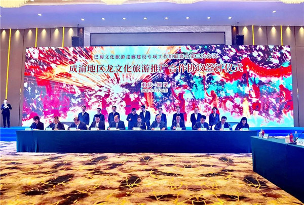 會(huì)上舉行了成渝地區(qū)龍文化旅游推廣合作協(xié)議簽訂儀式,在兩地媒體和文旅代表的見證下,四川省文化和旅游廳、重慶市文化和旅游發(fā)展委員會(huì)鄭重簽訂了成渝地區(qū)龍文化旅游推廣合作協(xié)議。