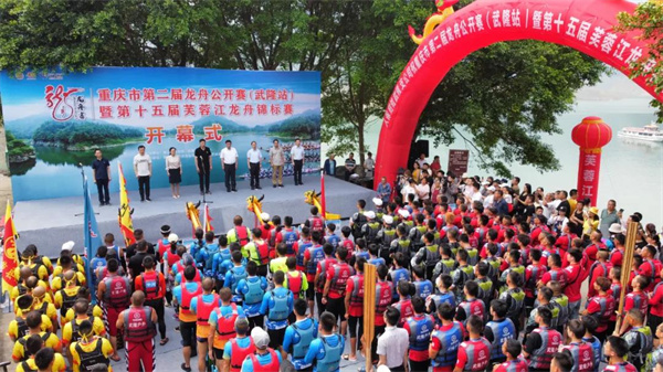 又到端午龍?zhí)ь^,百舸爭流賽龍舟。6月8日,重慶市第二屆龍舟公開賽(武隆站)暨第十五屆芙蓉江龍舟錦標(biāo)賽在江口鎮(zhèn)三河口開賽,14支參賽隊(duì)伍在芙蓉江上展開激烈的角逐,吸引了眾多游人觀看。