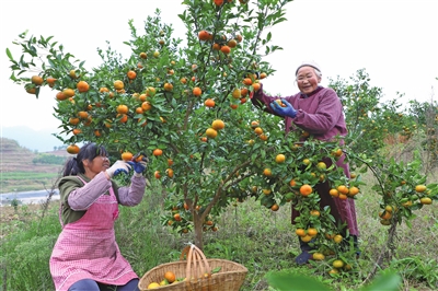 在夢沖塘村,剛剛從枝頭上采摘下來的新鮮柑橘吸引了不少游客購買嘗鮮。“聽說這里的柑橘很好吃,我們?nèi)认l(xiāng)玩,就順便帶點(diǎn)走,品嘗了下,果然口感好。”來自主城的田女士連連夸贊,并豎起了大拇指。