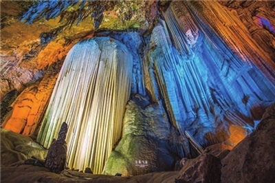 國(guó)家5A級(jí)景區(qū),世界自然遺產(chǎn)地,與美國(guó)的“猛犸洞”,法國(guó)的“克拉姆斯洞”并稱世界三大洞穴,芙蓉洞被稱作“斑斕輝煌的地下藝術(shù)宮殿”,鐘乳石琳瑯滿目,豐富多彩,幾乎包括鐘乳石所有沉積類型。70多種次生化學(xué)沉積物所構(gòu)成的豐富景觀,“巨幕飛瀑、大小雁塔、五龍柱、火箭待發(fā)、萬(wàn)箭掛壁”,輝煌壯麗,玲瓏剔透,令人目不暇接。