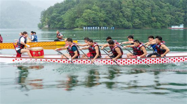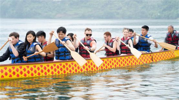 此外,來自英國、埃及、古巴、加拿大、比利時等外國友人及相關國家駐渝領事也參與了本次龍舟賽活動,由外國友人與當地選手組成的聯合隊伍開展的龍舟趣味挑戰組活動也精彩紛呈,贏得現場觀眾陣陣喝彩。
