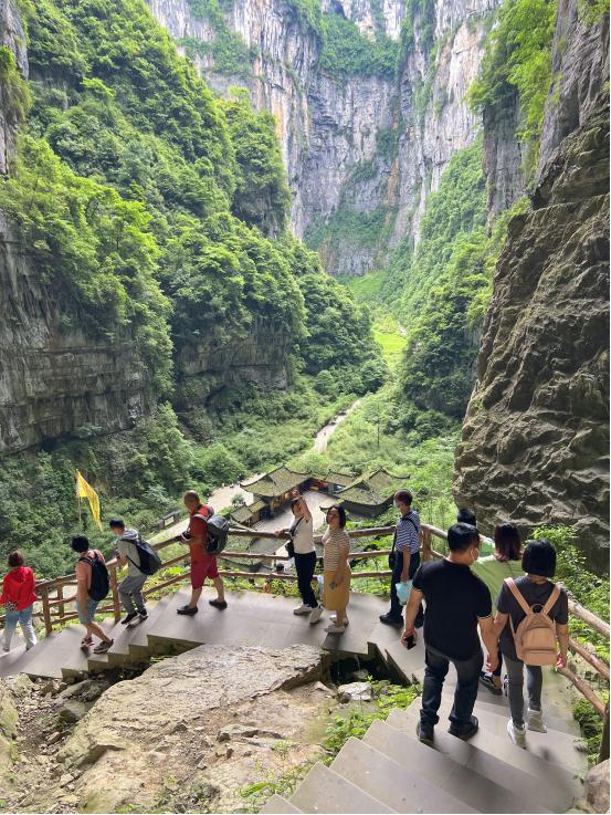 “在來之前我專門在網(wǎng)上查了下,武隆包括仙女山、芙蓉洞、芙蓉江的風(fēng)景都特別美,所以對武隆特別向往!”來自廣東的謝女士對武隆之旅感受深刻,天生三橋鬼斧神工,三座石橋雄渾壯觀,近距離感受武隆世界遺產(chǎn)風(fēng)光,謝女士及同行人員都稱不虛此行。