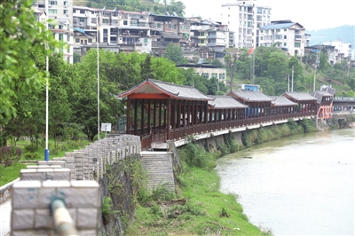 在長壩社區(qū)石梁河上,一座古樸雅致的廊橋架在河道上,橋上三兩老人閑坐,幾個小孩逗趣玩樂,就連步履匆匆的行人臉上也滿是笑容。