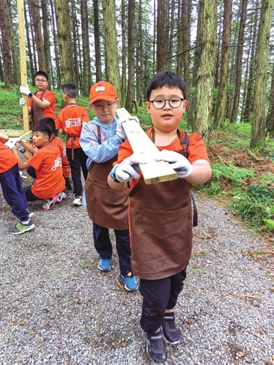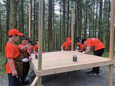 孩子們的夢想有很多,但是肯定少不了這一個:擁有一間自己的樹屋。7月12日是重報小記者研學夏令營研學的第二天,孩子們走進森林,感悟大自然的美好與保護環境的重要性,并化身小小建筑師,建造了一座森林童話樹屋。