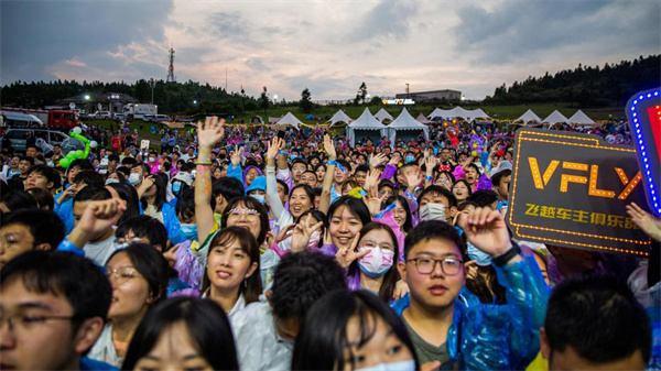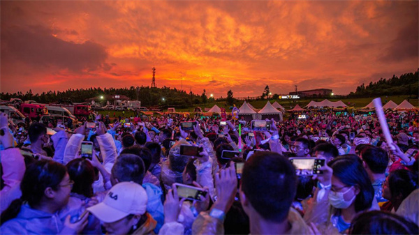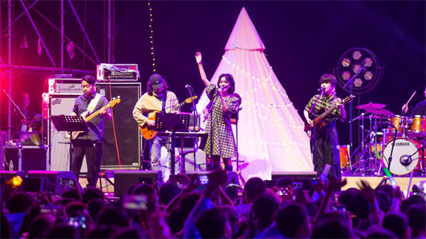 “跟隨節奏跟我們一起跳起來”當中國內地民謠樂隊鹿先森《一起跳支舞》旋律響起時,仙女山戶外草坪立即化身戶外迪廳,觀眾不由自主跟著旋律一起歡呼起舞。一首《春風十里》更是將現場氛圍點燃,觀眾紛紛揮舞熒光棒,隨著搖擺的手臂晃動,浪漫的點點星光,閃耀整個人潮人海。