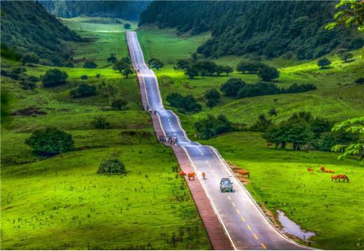 飆車戲的這條公路被譽為“中國最美公路”,位于仙女山國家森林公園核心區始建于2009年,全長4.5公里。當行駛在高低起伏的最美公路上,草原如綠毯綿延向遠方,駕車飛馳,猶如“人在畫中游、車在景中走”,每年都吸引眾多游客到此體驗打卡。