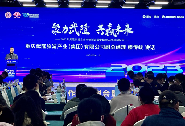 聚力武隆,共贏未來。1月10日,2022年武隆旅游合作商答謝會暨奮戰2023年啟動儀式,在重慶國際文旅之窗成功舉辦,武隆區人民政府副區長劉印出席活動并講話。武隆區文化旅游委、區旅游產業(集團)公司等相關部門領導,旅行商、電商平臺、研學機構等近100家渠道商代表,新華網、中國新聞社、央廣網、國際在線、網易新聞等10余家知名媒體歡聚一堂,共同總結2022年大家作出的努力和成績,展望2023年旅游市場光明前景。