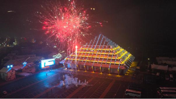 白天雪景浪漫,晚上煙花璀璨。在仙女山國家旅游度假區(qū)一場璀璨的煙花秀,吸引眾多游客駐足圍觀。絢爛光影劃破夜空,點點繁花照亮新年好運,伴隨著洪亮的爆竹聲和漫天華彩,所有的壓力煩惱在這當空綻放的火樹銀花里消弭于無形。