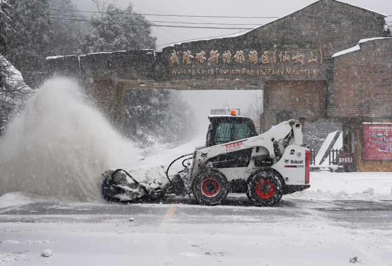特別是多日的降雪為景區(qū)交通增添不少壓力,“每天我們都出動(dòng)掃雪車11臺(tái),灑鹽車4臺(tái),備鹽200余噸,同時(shí)還安排了200名員工待命除雪!”仙女山景區(qū)工作人員表示。