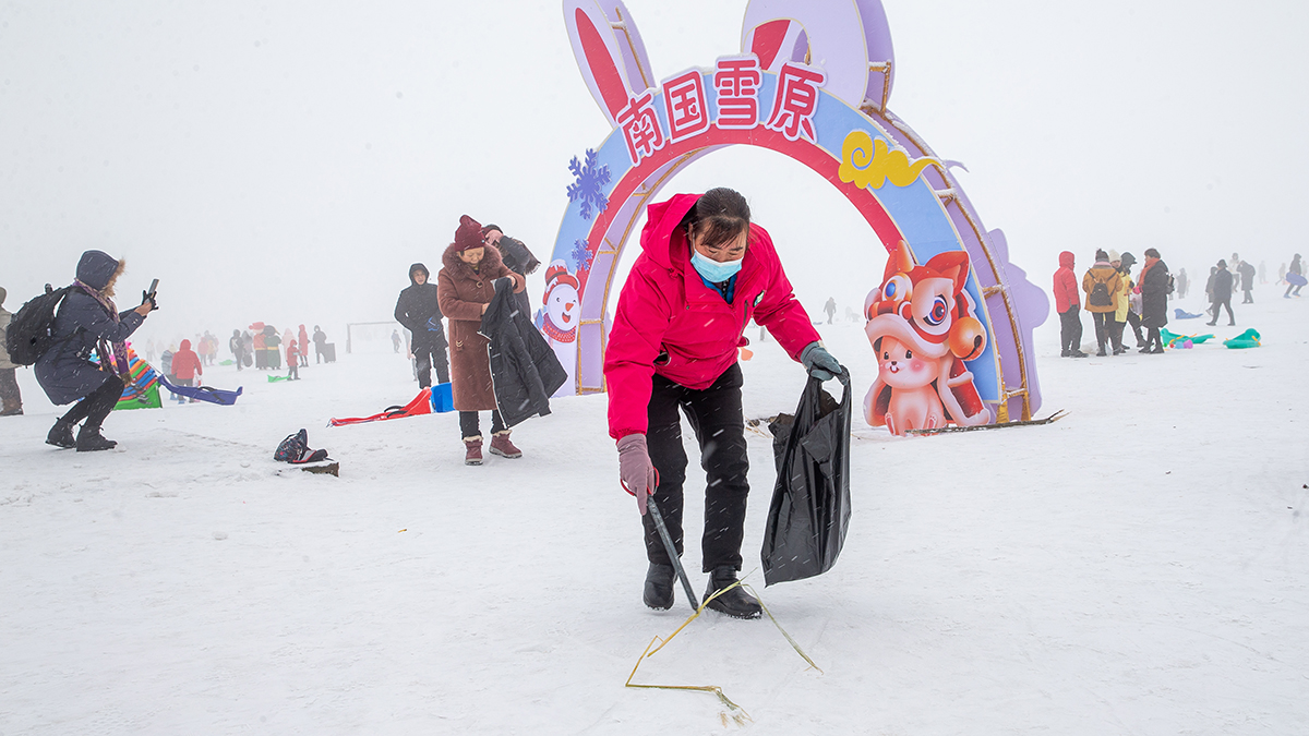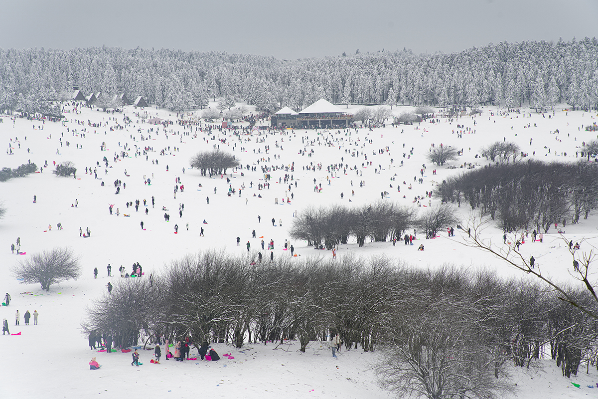特別是仙女山,白雪皚皚、銀裝素裹的冰雪童話世界中,到處都是滑雪玩雪、留影拍照的游客,大草原、滑雪場,人聲鼎沸、熱鬧非凡。