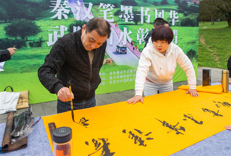 4月7日,以“秦漢筆墨書風華·武隆山水彰才情”為主題的書畫旅游活動在仙女山大草原舉行,來自陜西、重慶兩地的100余名書畫愛好者以山水為景、書畫為媒,為游客帶來了一場高雅的文化大餐和視覺盛宴。
