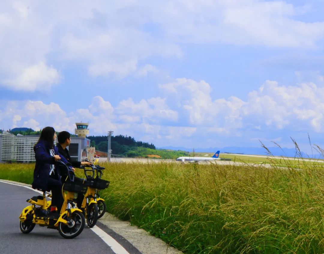近期,仙女山機場迎來了一批靚麗的“小黃車”——松果電動共享單車,并用此開通了國內首條機場至仙女山景區(AAAAA)的自騎游覽“專線”。