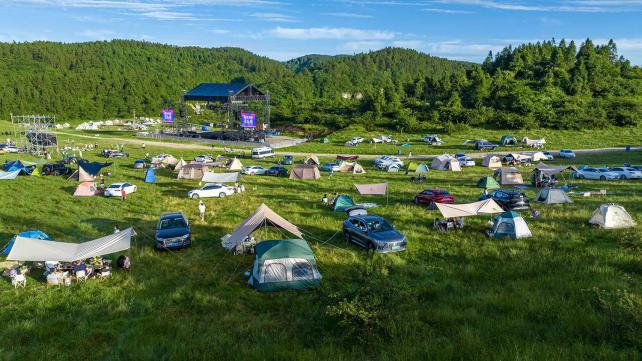 而今年仙女山更是別出心裁,在露營上玩出新花樣!集“音樂、露營、美食、休閑、游玩、體驗”于一體,打造西南地區(qū)最大的高山草原露營基地,可謂是露營“天花板”。在主題音樂周,游客們可以驅(qū)車直達音樂節(jié)現(xiàn)場,體驗音樂星空露營。