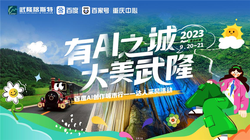 世界自然遺產,天地大美武隆!9月20日至9月21日,由武隆景區主辦的“有AI之城 大美武隆”網絡達人采風活動即將啟動。