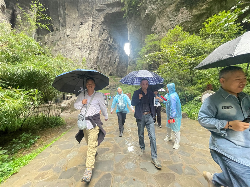 在兩天充實而歡快的行程中,達人們首先前往了武隆天生三橋。“站在谷底下抬頭仰望,仿佛看到三條巨龍在落差數(shù)百米的山間翱翔,氣勢磅礴的景色讓人被大自然的神奇所吞沒!”來自貴州的歷史文化博主,全網(wǎng)粉絲300萬的敖先生說,天生三橋的雄偉神奇,深深激發(fā)了作者們的創(chuàng)作熱情。