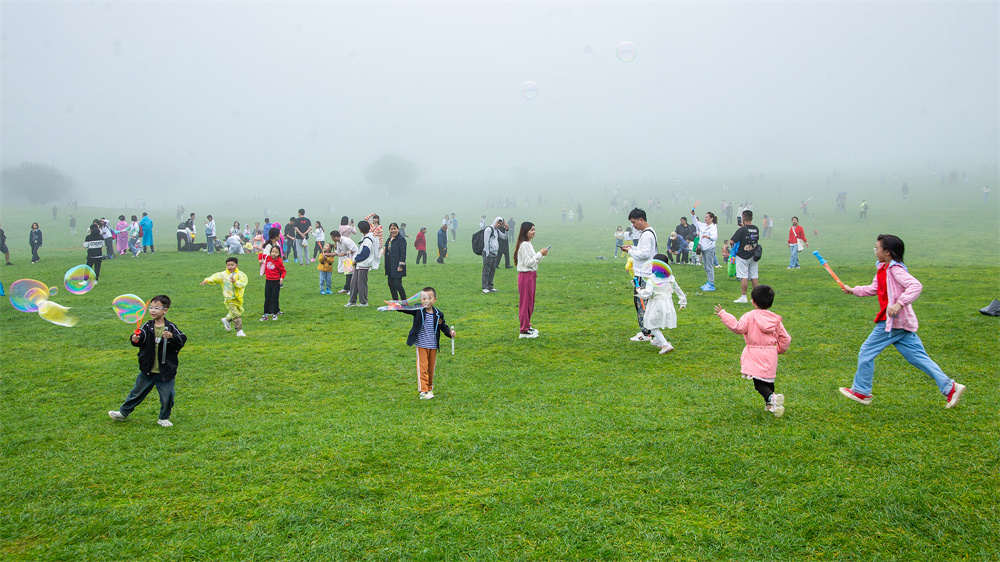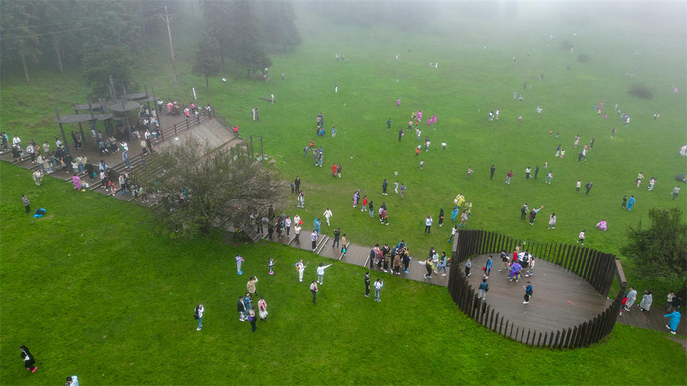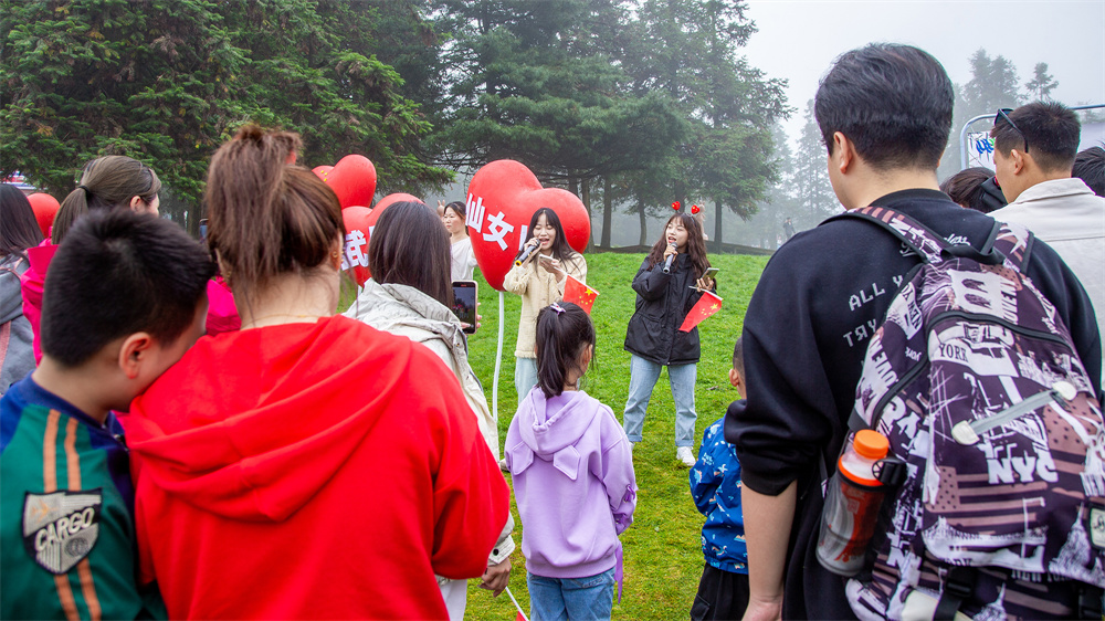“今天來到武隆,不僅看到了美麗的風景,還收獲了很多驚喜。特別是下雨之后,云霧飄渺的感覺,表演也非常精彩,感覺這一趟不虛此行,非常棒。”游客李先生對景區的活動贊不絕口。另外,仙女山設置多個“我為祖國點贊”打卡點,開展歌唱祖國特色活動,共同為祖國慶生,祈愿美好。