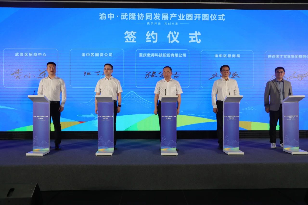 開園儀式上,武隆區(qū)招商中心與渝中區(qū)國資公司,重慶傲得科技股份有限公司、陜西淘丁實業(yè)集團(tuán)有限公司與渝中區(qū)招商局簽約。據(jù)悉,“渝中·武隆協(xié)同發(fā)展產(chǎn)業(yè)園”位于渝中區(qū)企業(yè)天地,建設(shè)面積390平方米,設(shè)置了路演會議廳、共享辦公空間、共享會議室、公共接待區(qū)等配套空間,可滿足項目辦公、項目洽談等需求。目前,園區(qū)已入駐傲得航空器研發(fā)制造及應(yīng)用項目等4個項目或企業(yè),包括航空航天、文旅融合、數(shù)字經(jīng)濟和建筑領(lǐng)域,預(yù)計引入高端研發(fā)人才40名以上、解決就業(yè)人口1000人以上。