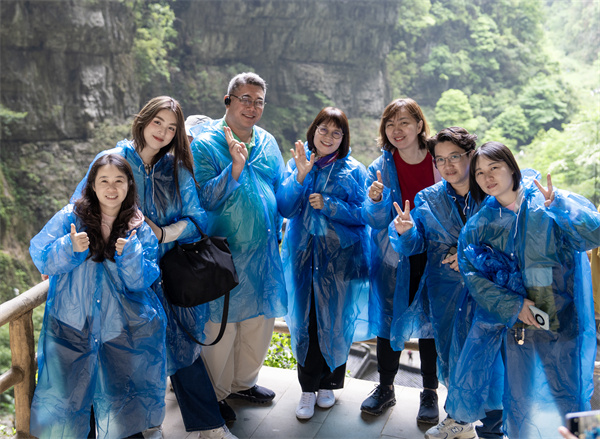 隨后,他們馬不停蹄趕到了有“落在凡間的伊甸園”之稱的仙女山國家森林公園。在最美波浪公路上,面對大自然的饋贈,游客們紛紛駐足欣賞,合影留念。“首先希望武隆繼續保持景區的生態優勢,實現人與自然的協調共生;其次希望武隆加強宣傳推介,將自身的特色旅游資源宣傳出去”游客為武隆旅游走向國際提出了自己的寶貴意見。