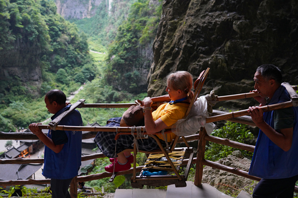 天生三橋的雄、奇、險(xiǎn)、秀、幽、絕讓采風(fēng)組贊不絕口,境外記者直呼“Amazing,it's beautiful and wonderful!”并現(xiàn)學(xué)重慶話點(diǎn)贊天生三橋,“霸道慘了!”更有境外記者體驗(yàn)當(dāng)?shù)靥厣煌üぞ?ldquo;滑竿”,所羅門(mén)群島媒體協(xié)會(huì)所羅門(mén)廣播公司高級(jí)記者伊麗莎白·薩德表示,“坐在上面欣賞風(fēng)景,感到非常治愈、釋放、興奮,這太神奇了,太異國(guó)情調(diào)了,太棒了!”