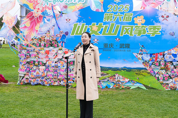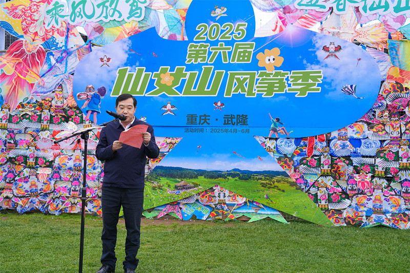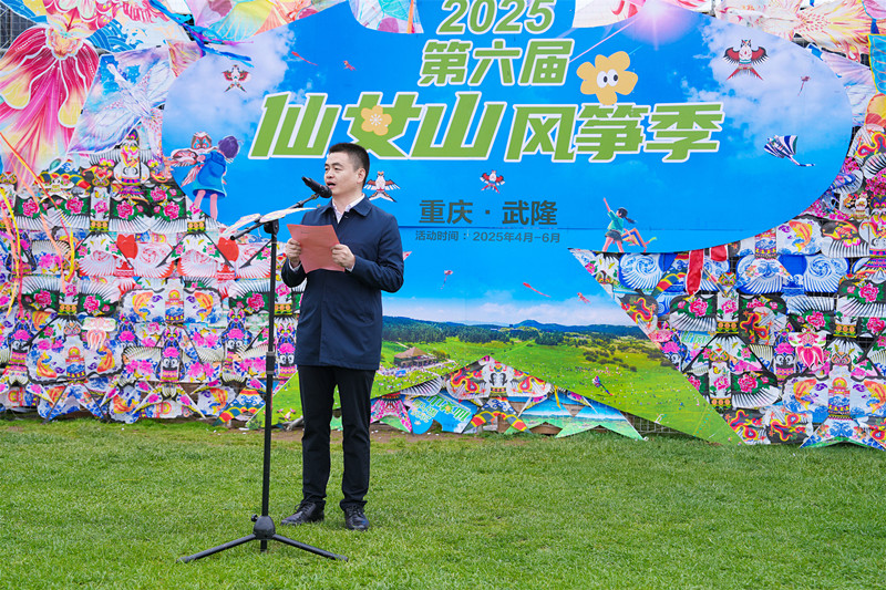 下午一點,開幕式正式開始。重慶武隆旅游產(chǎn)業(yè)(集團)總經(jīng)理賀秋石,現(xiàn)場為游客們揭曉了今年仙女山風(fēng)箏季精彩紛呈的活動內(nèi)容。重慶市武隆區(qū)文化旅游委主任蔡斌致辭,他表示,本屆仙女山風(fēng)箏季將傳統(tǒng)民俗與現(xiàn)代文旅深度融合,既有百米巨龍風(fēng)箏的震撼亮相,也有國際風(fēng)箏大師的匠心之作;既有傳統(tǒng)紙鳶的技藝展演,也有親子互動的趣味體驗。真誠希望每一位朋友都能感受到“風(fēng)箏逐云去,人在畫中游”的詩意浪漫,更能在武隆的綠水青山間,駐足治愈心靈的棲息之地。