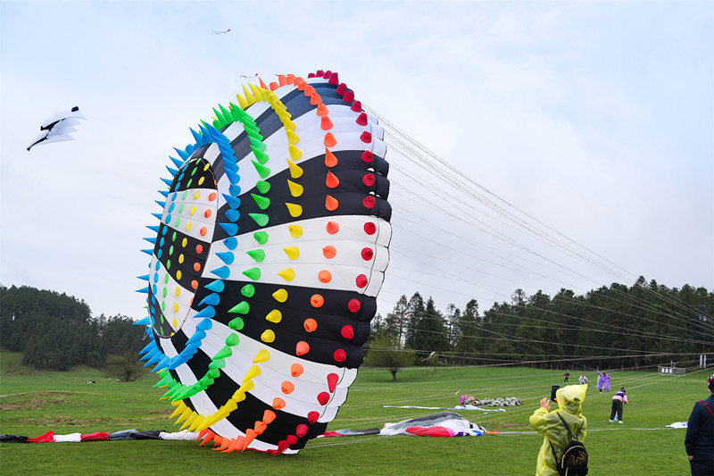最引人入勝的還屬山東濰坊非遺“滾地龍”,只見其在表演人員的操控下翻滾騰躍,如彩虹旋風(fēng)掠過草地,游客們爭相伸手觸摸這份來自“風(fēng)箏之都”的祝福。在現(xiàn)場,旋轉(zhuǎn)、俯沖、急劇爬升……這些看似風(fēng)箏不可能完成高難度動作引來游客陣陣驚嘆。