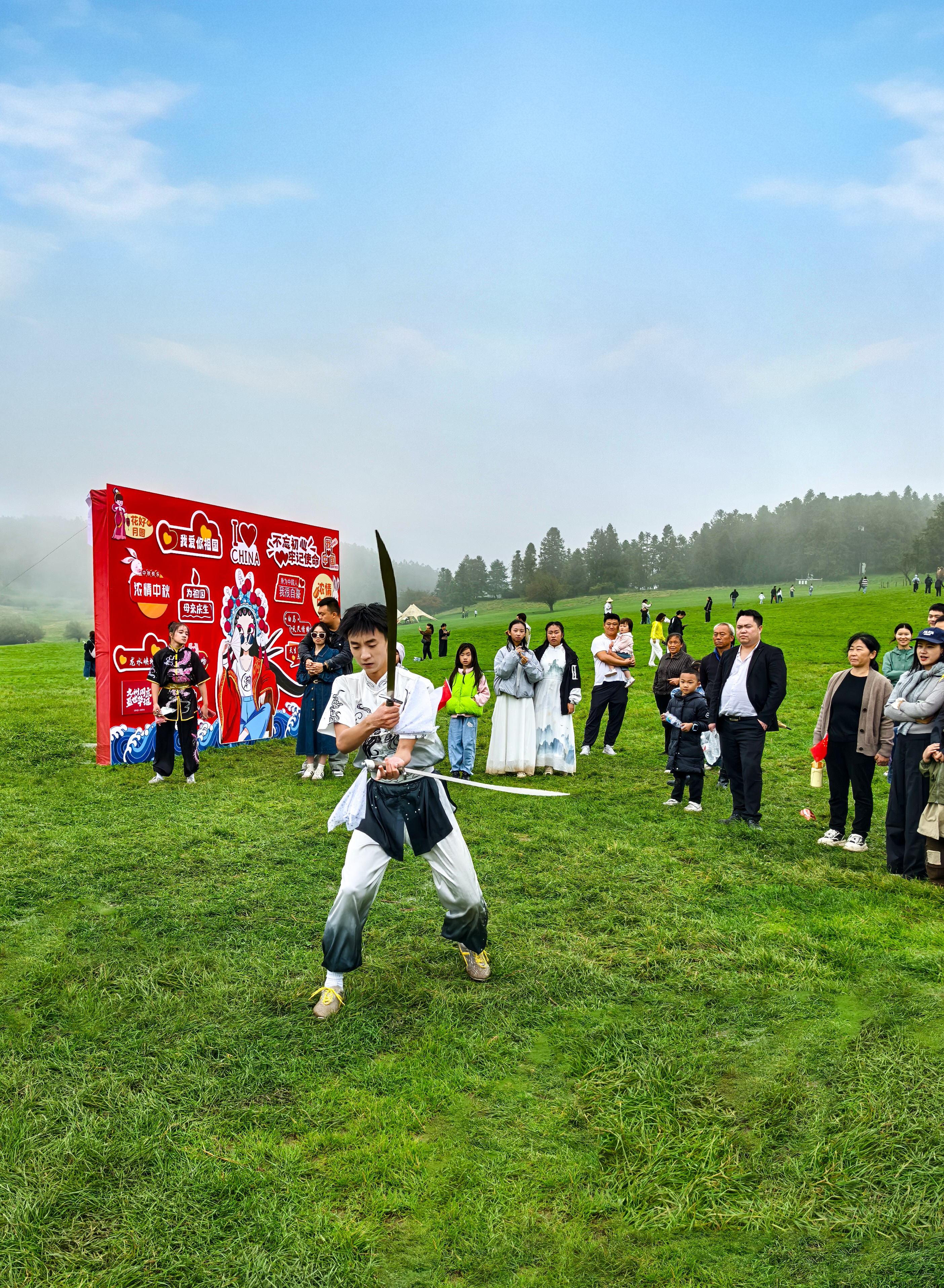聽濤亭中,《高山流水》民樂悠揚(yáng),琴音兼具鏗鏘與溫婉,與松濤相融,讓游人沉醉。這一切熱鬧與溫情的背后,是工作人員持續(xù)的奔波與微笑服務(wù),保障了國(guó)潮體驗(yàn)的流暢與深度。