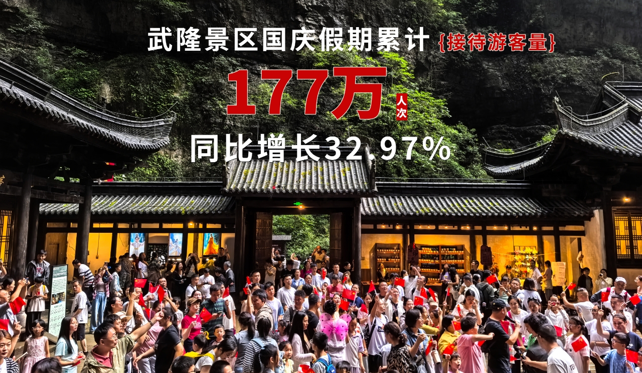 據統計,今年中秋國慶期間武隆共接待游客 177萬人次,實現綜合旅游收入 5.21億元,較2024年同期分別增長32.97 %、23.09 %,旅游成績單“耀眼”。