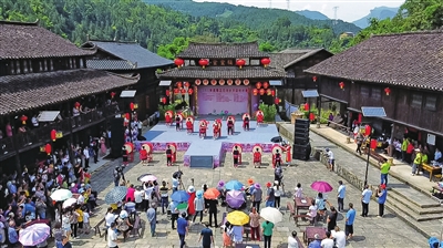 活動(dòng)現(xiàn)場(chǎng),一曲由后坪苗族土家族鄉(xiāng)中心校苗鼓隊(duì)帶來的樂舞《苗鼓迎賓》拉開了文藝匯演的序幕,孩子們激情澎湃的表演很快將現(xiàn)場(chǎng)游客和村民的熱情點(diǎn)燃,隨后,滄溝鄉(xiāng)、浩口苗族仡佬族鄉(xiāng)、區(qū)文化館、區(qū)民族歌舞團(tuán)等單位帶來的山歌對(duì)唱、非遺走秀、民間器樂合奏、舞蹈等節(jié)目輪番上演,不斷將現(xiàn)場(chǎng)氣氛帶上高潮。整場(chǎng)文藝演出精彩紛呈,形式多樣,展現(xiàn)了地方獨(dú)具特色的鄉(xiāng)村文化,展現(xiàn)出鄉(xiāng)村振興路上廣大人民群眾昂揚(yáng)向上的姿態(tài)和奮進(jìn)新征程的自信與激情。